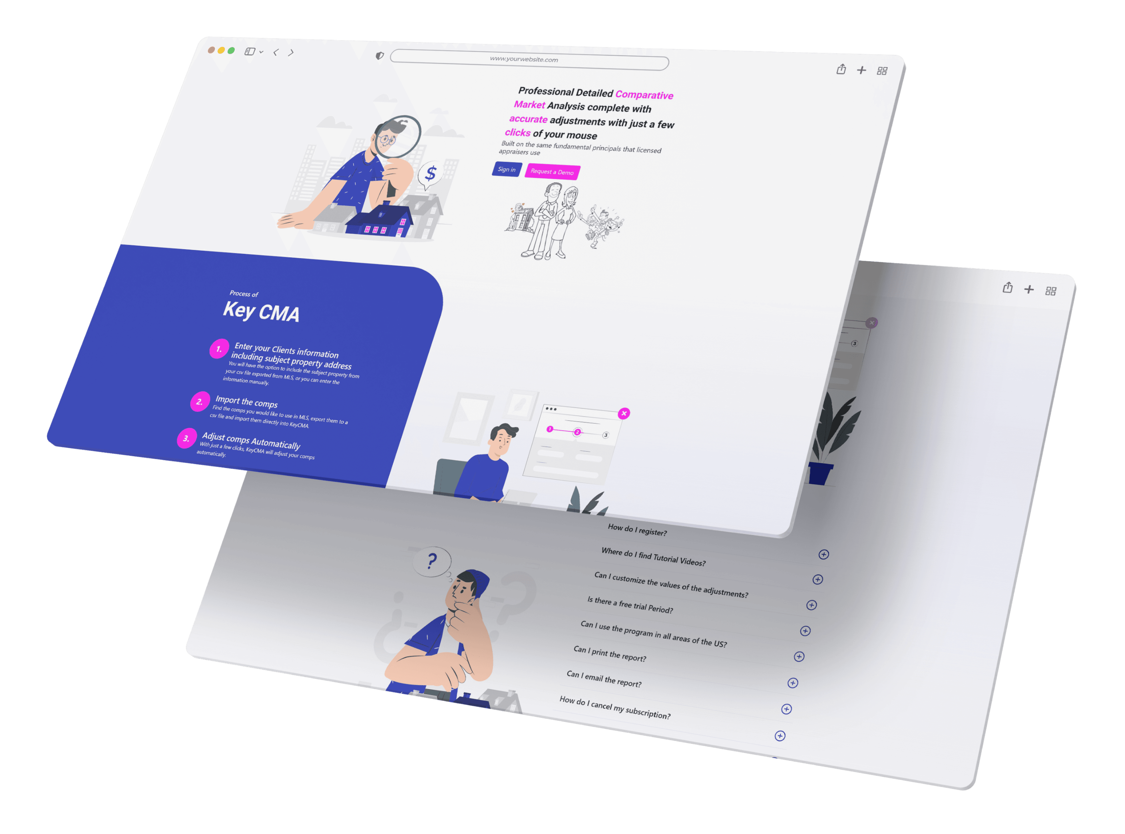 Our customers can use this system to generate comprehensive reports that compare some chosen properties. Before buying a subscription plan, agents may create accounts for themselves. After submitting their credentials, agents upload CSVs from MLS systems to KeyCMA. Then, they pick a subject property, followed by selecting a comparable property and making all necessary alterations. Moreover, they can produce elaborate reports that examine the subject property compared to the comparables chosen for analysis.