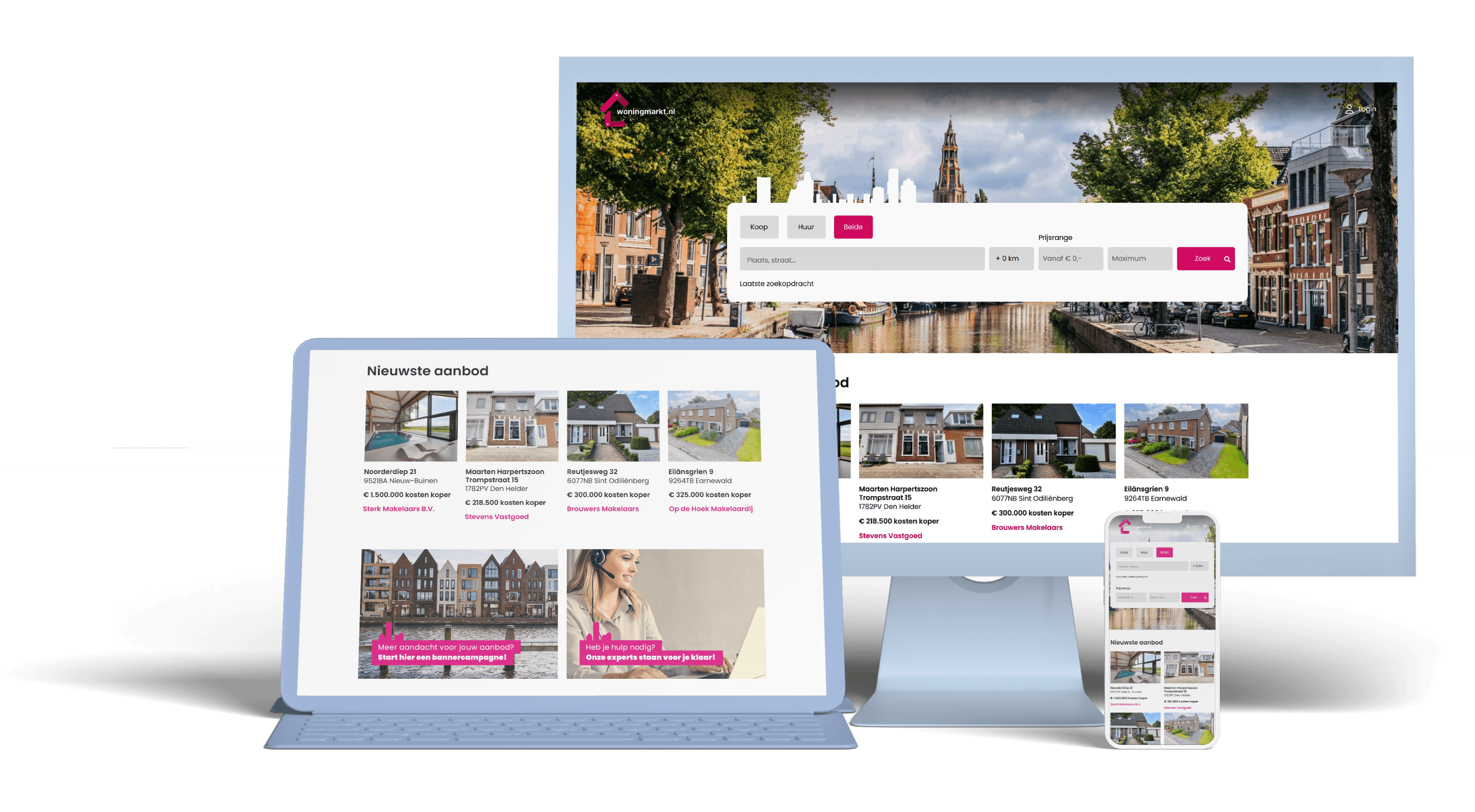 Woningmarkt.nl is an advanced technology online platform that connects buyers, sellers, tenants, and landlords. Its specialty is that it brings together supply and demand in a user-friendly way, regardless of industry affiliation. Both small brokers and large chains can list properties here. Launched in May 2023, Woningmarkt.nl is continually improving and expanding.